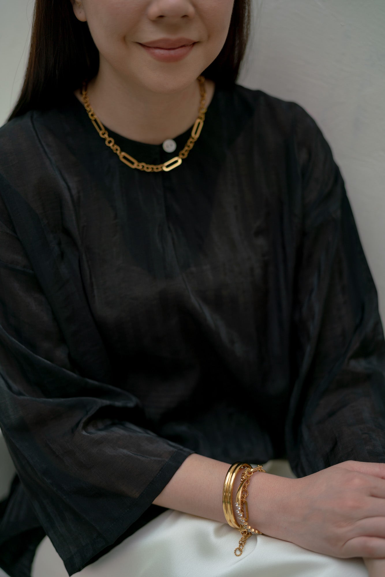 - Loose, oversized cut